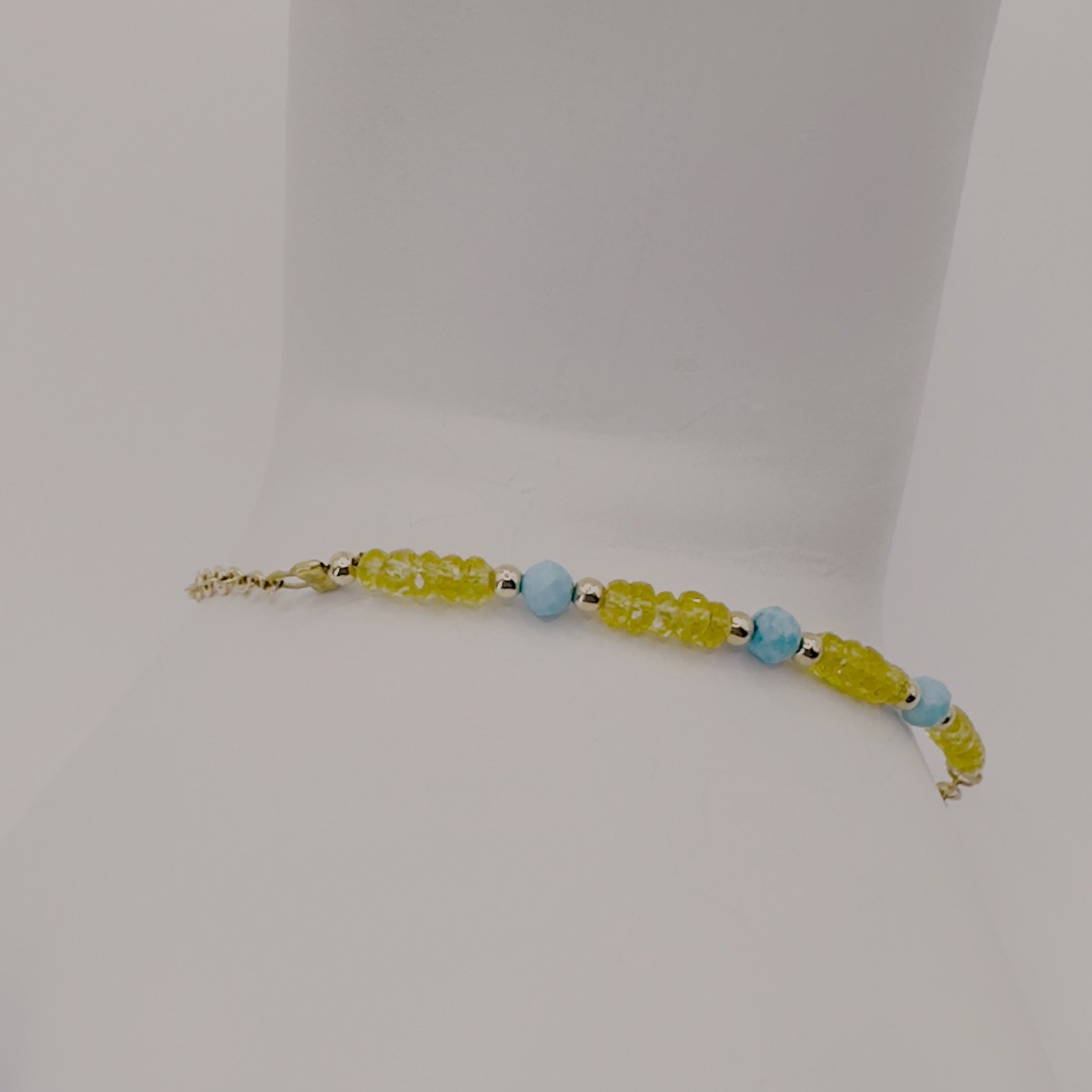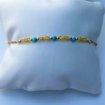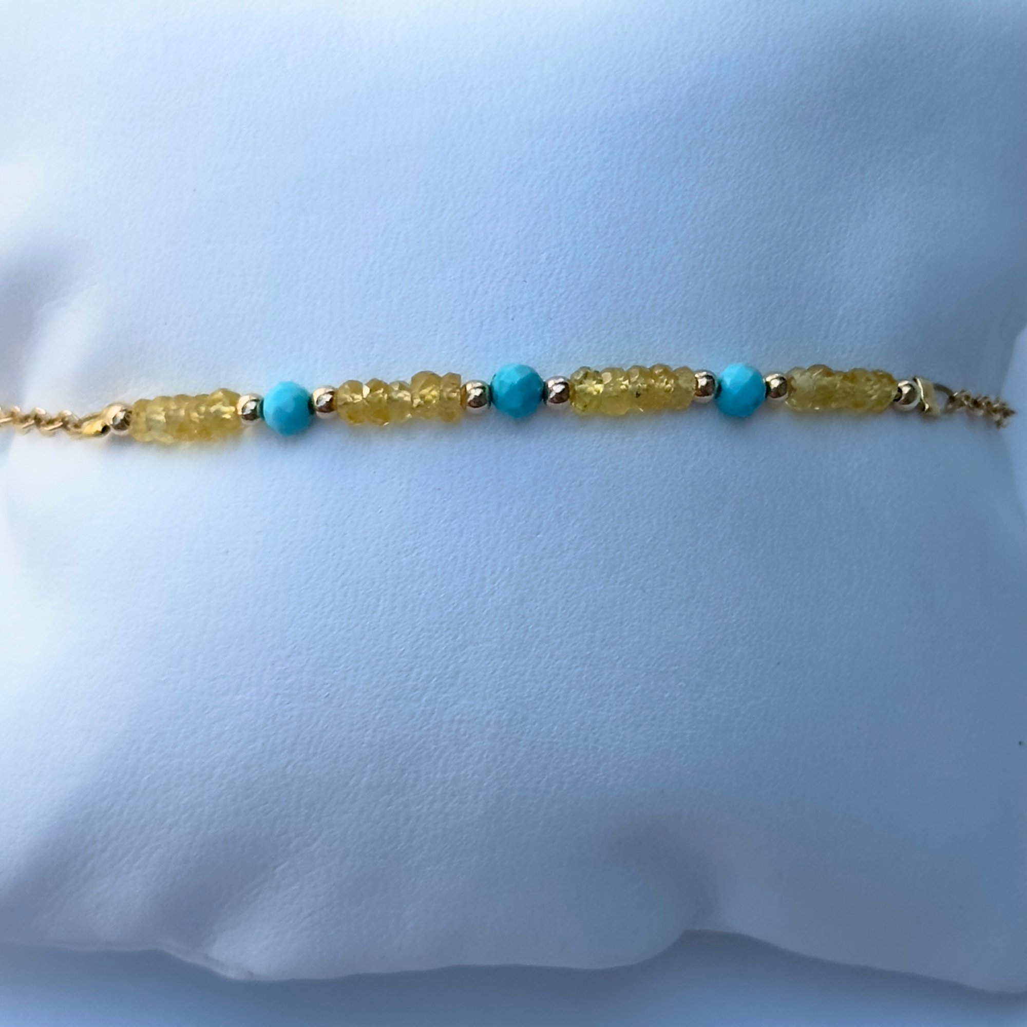 Yellow Sapphire 3mm , Turquoise 3mm, Gold filled , 1 inch extension