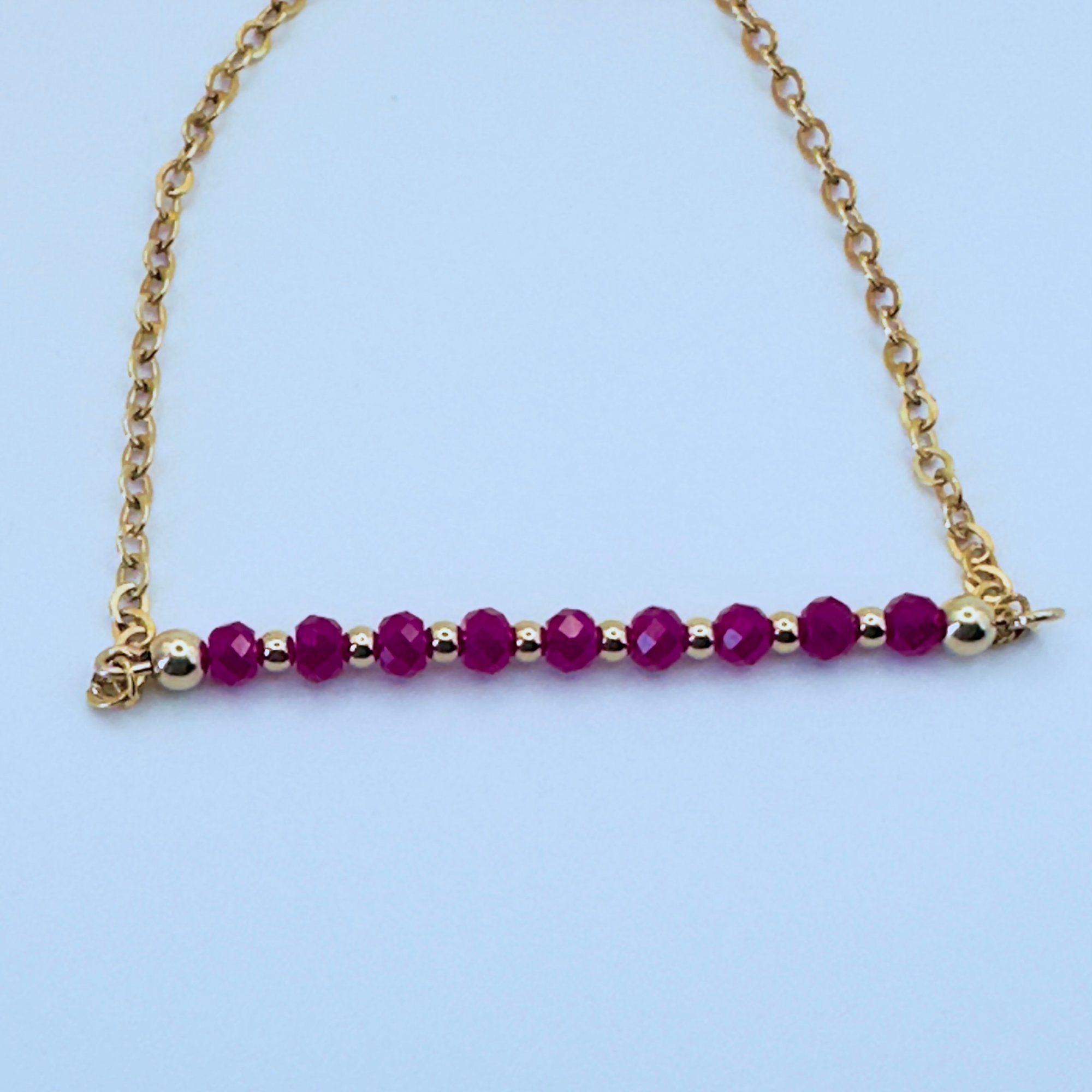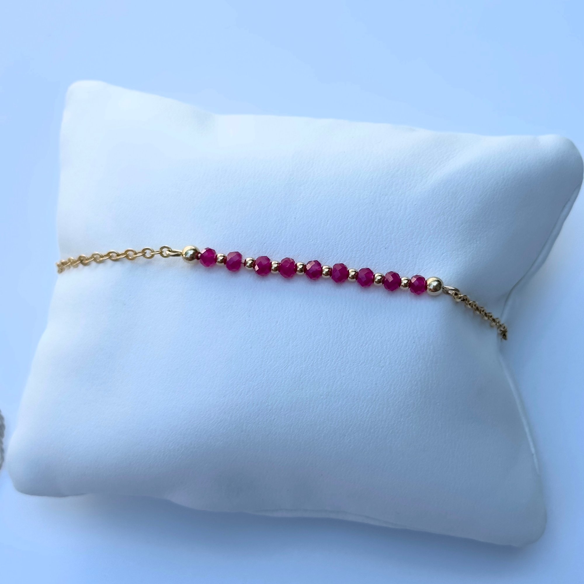 Ruby 2mm Beads and Gold filled bracelet. 1 inch Extensión